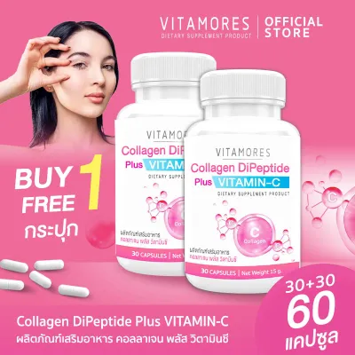 ⚡ส่งฟรี ส่งไว⚡ VITAMORES Collagen DiPeptide Plus Vitamin C ผลิตภัณฑ์เสริมอาหาร คอลลาเจน ไดเปปไทด์ พลัส วิตามิน ซี (30 แคปซูล) ตัวช่วยเพื่อผิวอ่อนเยาว์(1+1)