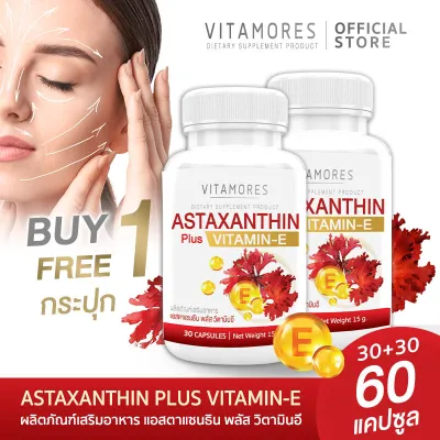 🔥ส่งฟรี ส่งไว🚛 VITAMORES Astaxanthin Plus Vitamin E ผลิตภัณฑ์เสริมอาหารแอสต้าแซนธินผสมวิตามินอี (30 แคปซูล) ลดริ้วรอย ไร้จุดด่างดำ ต้านอนุมูลอิสระ(1+1)