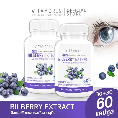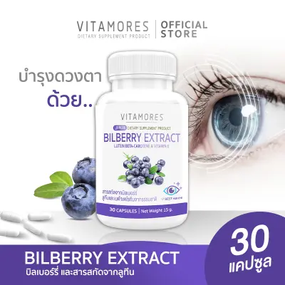 🚛ส่งฟรี🔥 VITAMORES Bilberry Extract Plus Lutein Beta-Carotene&Vitamin E (30 แคปซูล) อาหารเสริมบำรุงสายตา ไวต้ามอร์ส ดูแลดวงตาคู่สวยด้วยสารสกัดจากธรรมชาติ (1แถม1)